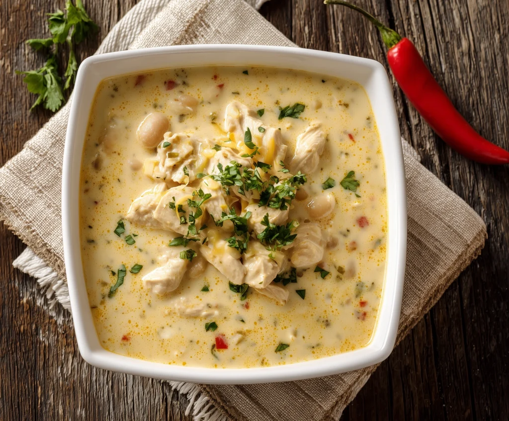 This creamy white chicken chili is rich, flavorful, and a guaranteed crowd-pleaser. With tender chicken, hearty beans, sweet corn, and a velvety broth, it delivers comfort in every bite. Perfect for family dinners, casual gatherings, or weeknight meals, this chili is creamy, easy to make, and impossible not to love.
