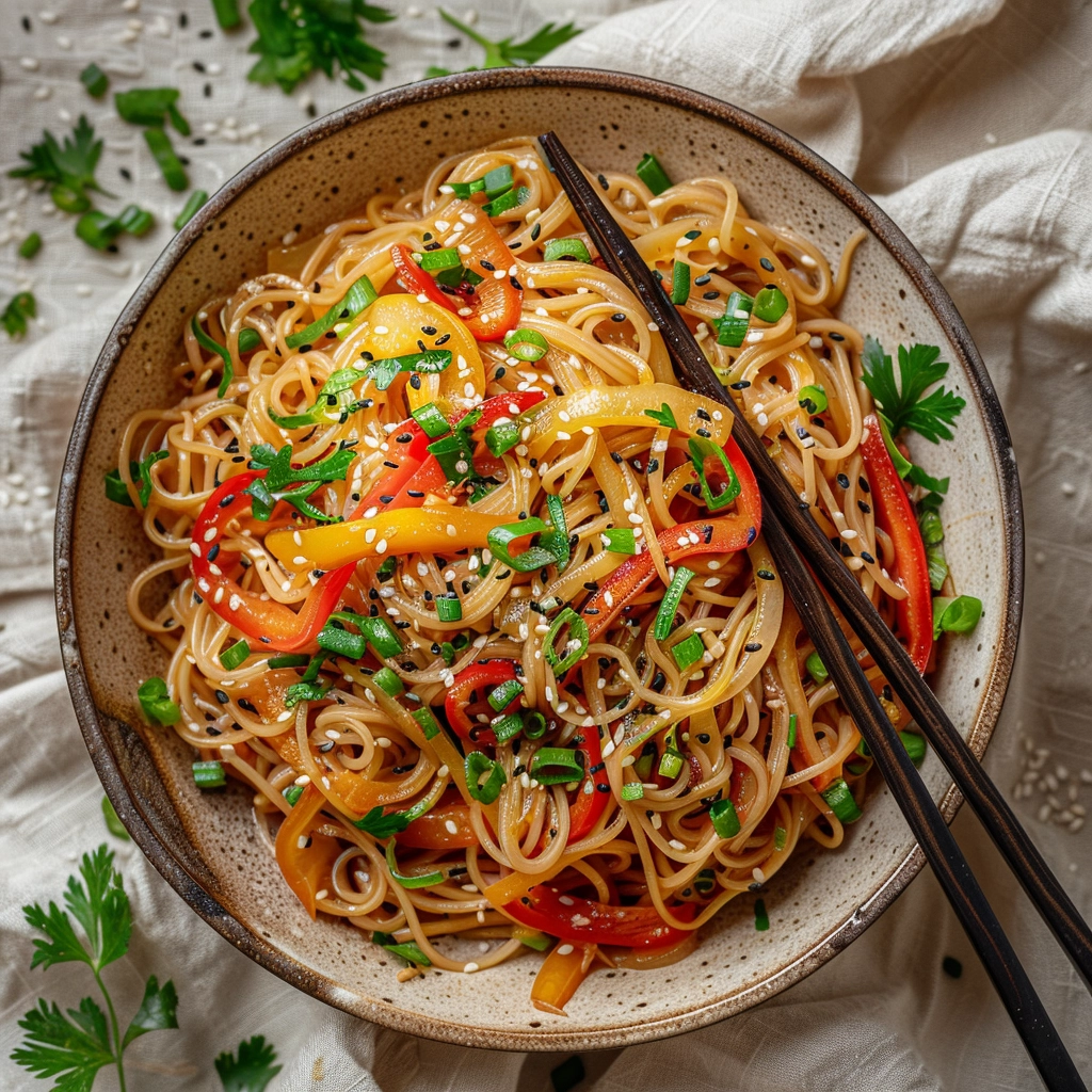 These noodles are best enjoyed fresh, but you can store leftovers in an airtight container in the refrigerator for up to one day. Reheat gently in a pan with a splash of water to revive the texture.